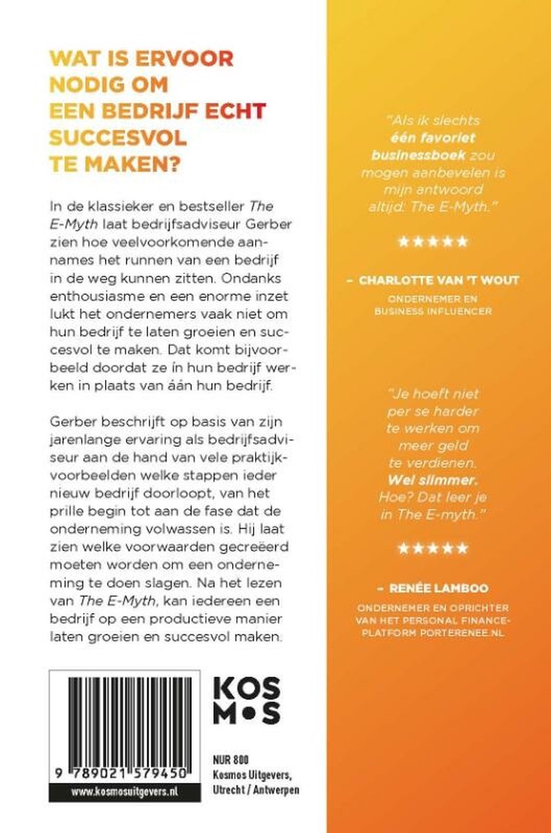 | Originele titel | The E-Myth | Het is een vertaling van een internationaal succesvolle titel; inhoudelijke uitgangspunten zijn afkomstig van de originele publicatie. |