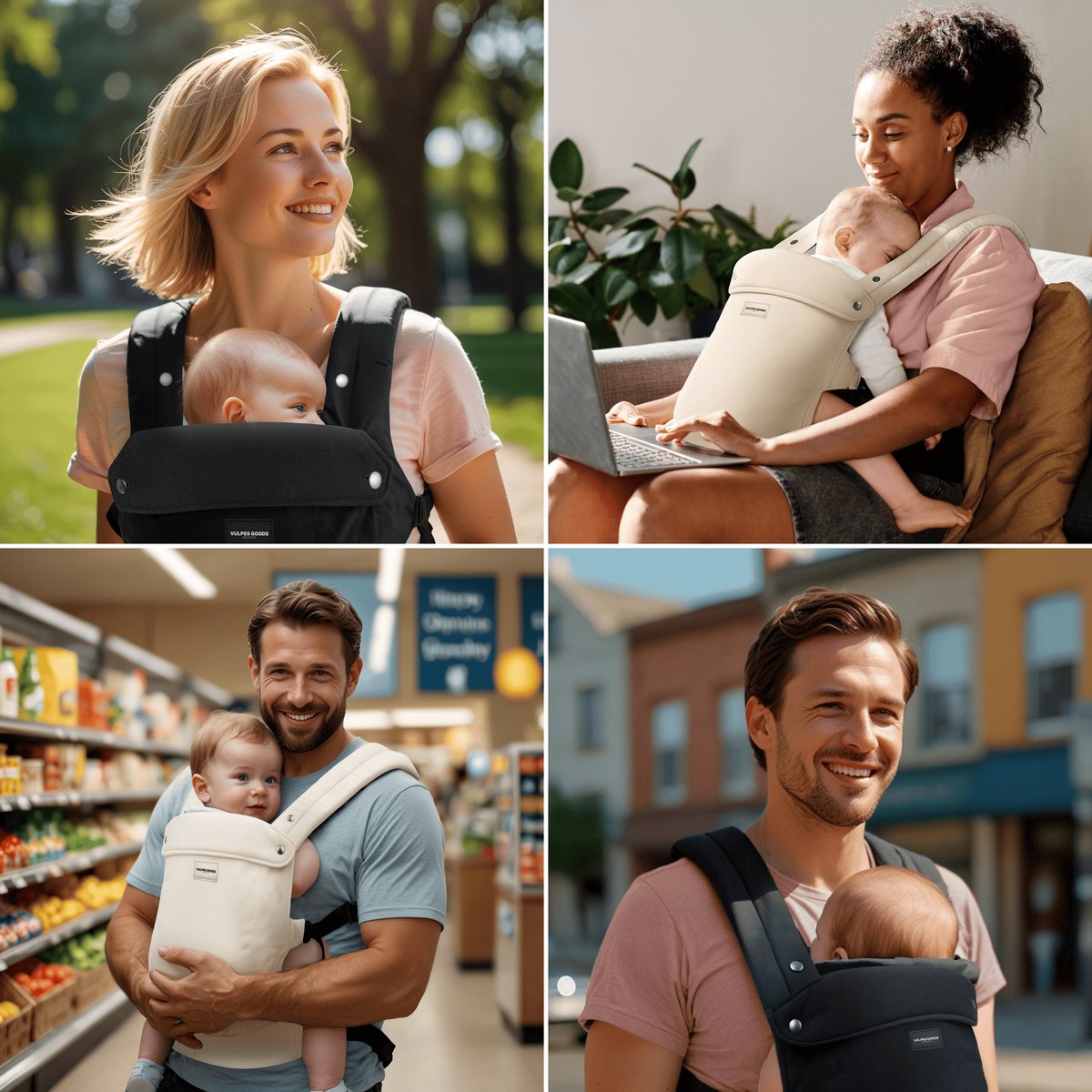 - Thuis en slapen: dankzij zacht katoen en huid‑op‑huid mogelijkheden is de zak geschikt voor rustmomenten en het versterken van de ouder‑kindbinding.