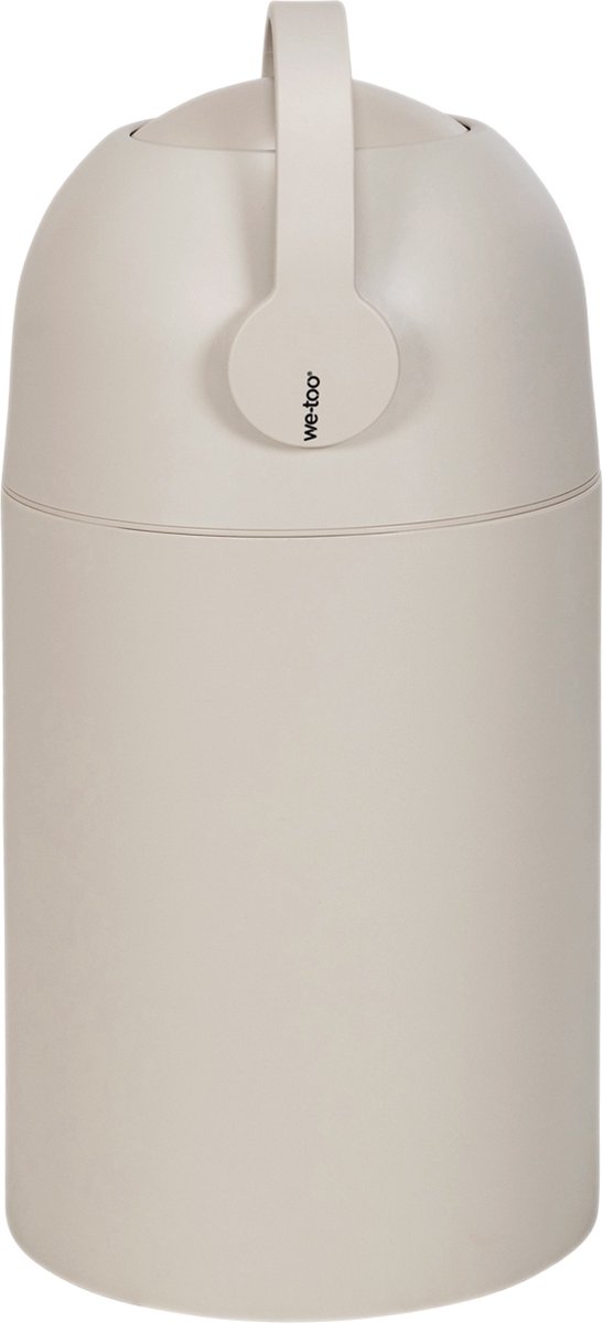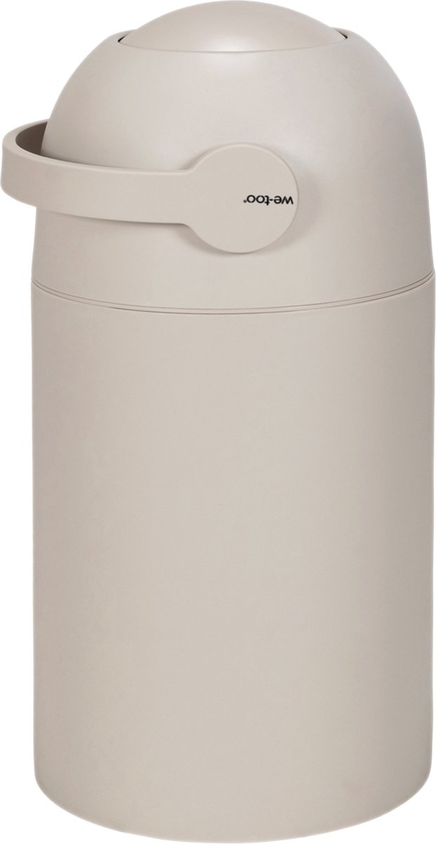 De We-Too Luieremmer Oatmeal is een compacte, luchtdichte luieremmer met gepatenteerd anti-geursysteem en een neutrale beige kleur; bedoeld om tot circa 25 (wegwerp)luiers geurvrij te bewaren zonder speciale navullingen.