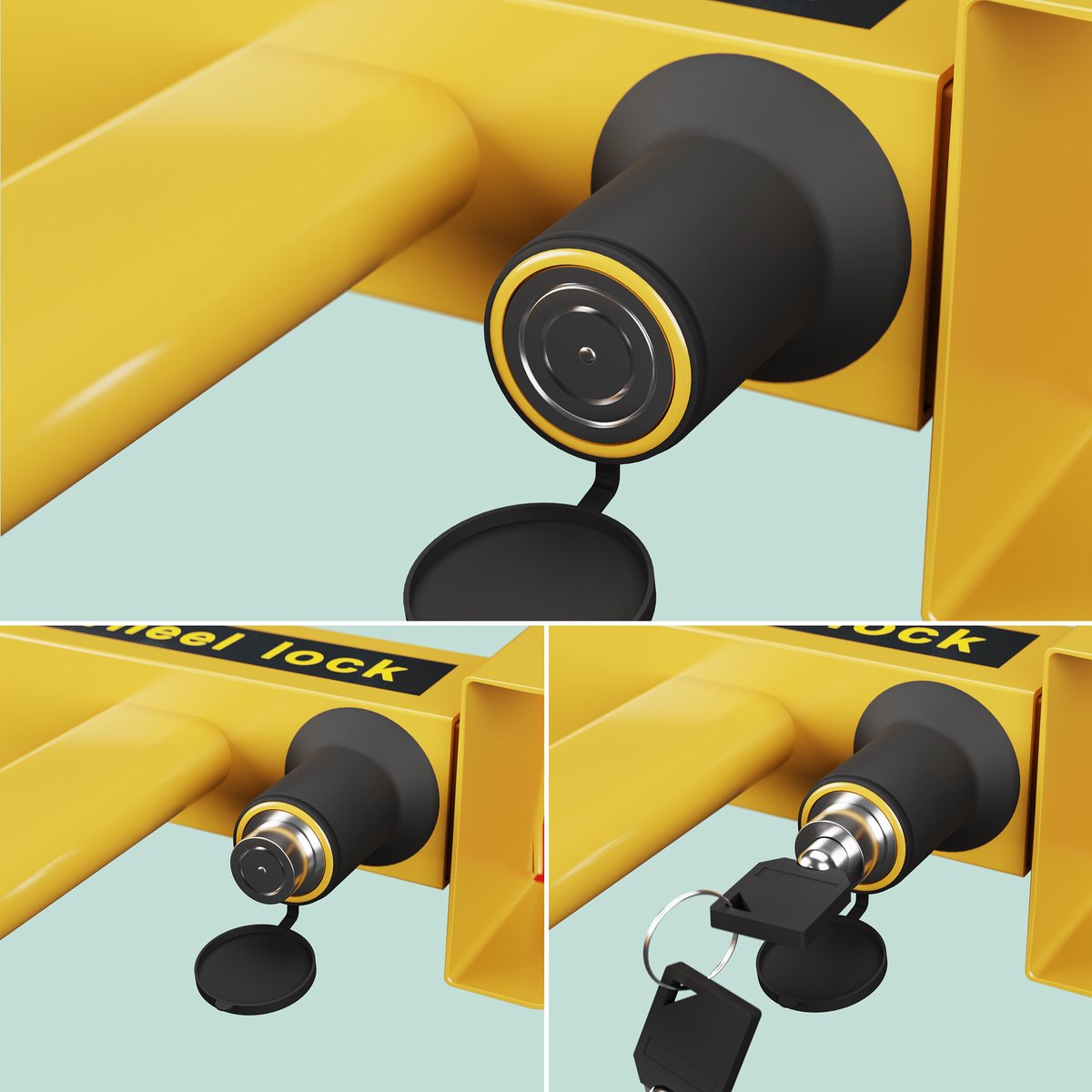 - Opvallende kleuren (geel, rood, zwart) voor visuele afschrikking en bescherming van velgen tegen krassen.